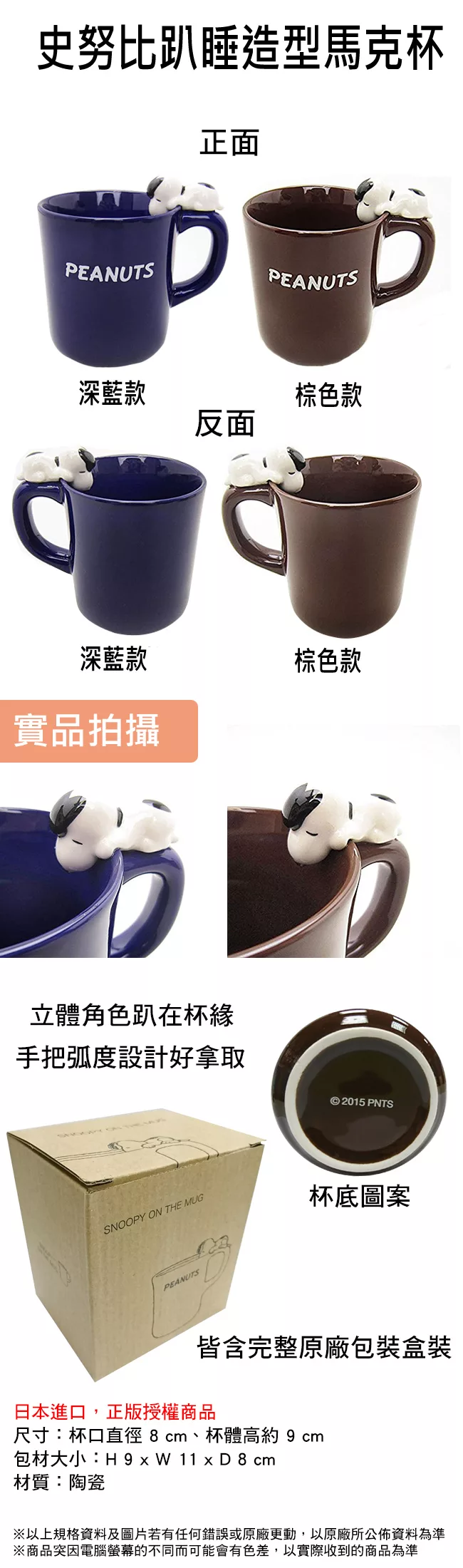 博客來e-coupon 【日本進口正版】史努比 Snoopy 趴睡造型 陶瓷 馬克杯 250ml PEANUTS -深藍款